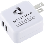 The UL Certified Dual Output AC Adaptor is a UL certified power Adapter with two outputs that allow you to charge a smartphone and tablet at the same time. Output: 5V/1000mA/2100mA max. A USB cable is not included.
